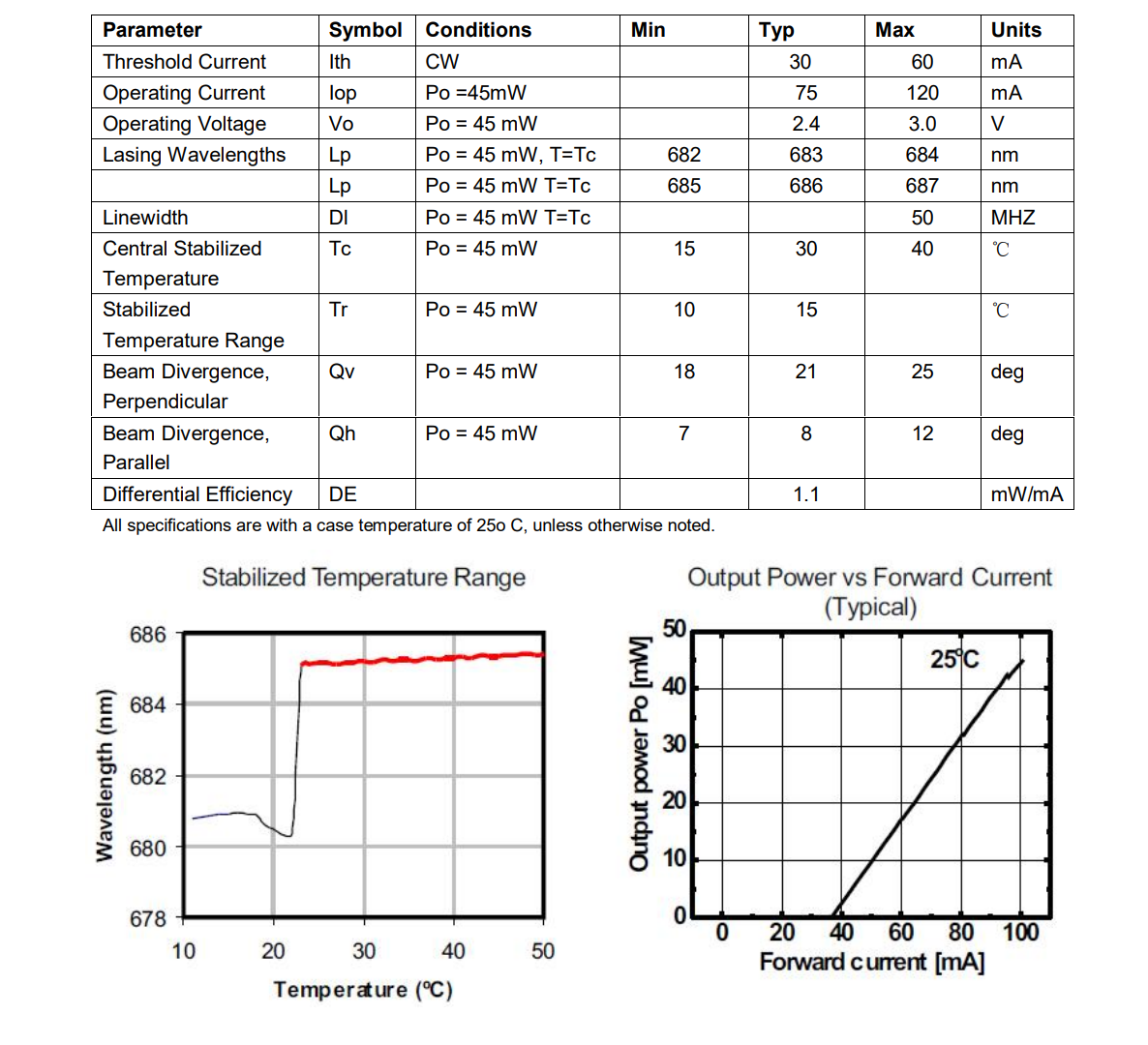 685nm Wavelength Stabilized Laser is a single mode, miniature laser in a standard TO package.